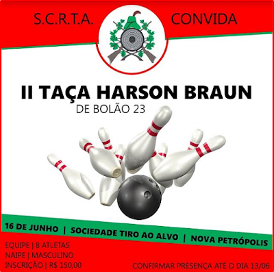Acontece neste final de semana, a segunda edição da Taça Harson Braun de Bolão 23 Masculino. O evento ocorrerá no sábado (16), na Sociedade Recreativa Tiro ao Alvo, de Nova Petrópolis. Ainda há vagas disponíveis para as equipes que desejarem fazer parte deste justo tributo a um dos mais devotados e abnegados bolonistas do Sul do Brasil. Prestigie! Venha se divertir com sua equipe em mais esta festa do Bolão, que vem se tornando tradicional no calendário bolonista Gaúcho.