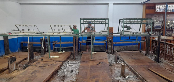 Os trabalhos de modernização e ampliação do Departamento de Bolão do Esporte Clube União Forquetense, de Caxias do Sul, seguem a todo vapor. Os pranchões estão todos já instalados e o licento da parte de baixo das máquinas também já está concluído.